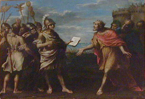 Скилла, дочь Низуса, царя Мегарского, приносящая златые волосы отца Миносу.XVII в.
