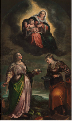 Мадонна во славе с младенцем и святыми Агатой и Аполлонией.1580 г.