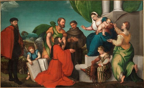 Мадонна с младенцем и святыми Матфеем, Франциском, Лючией, мэром Маттео Соранцо, его дочерью Лючией и братом Франческо.1536 г.