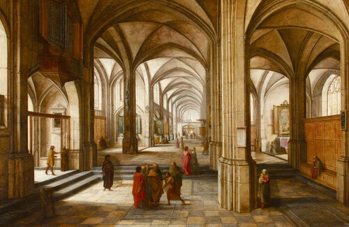 Интерьер воображаемой церкви или собора (?) с библейской сценой.1621 г.