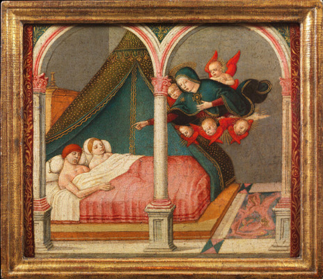 Происхождение: Сиена, Сан Доменико, часовня Соццини с Мадонной делла Неве (Мадонна в снегу), 1508; во время реставрации часовни в 1707/08–1713 годах перенесена Никколо ди Гальгано Соццини в палаццо Соццини, виа ди Пантането, 45; возвращена в церковь в 1724 году; снова перемещена в палаццо к 1786 году; возможно, в Париже, графом Анатолем Демидовым; возможно, в Париже, князем Алексеем Федоровичем Орловым, после 1846 года; приобретена Беренсонами у Trotti et Co., Париж, Вандомская площадь, 8, 13 октября 1911 года за 5000 французских франков.