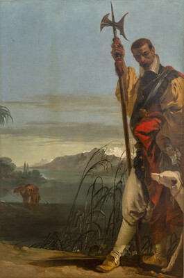 Часть (фрагмент) грандиозного горизонтального полотна, изображающего Моисея, спасённого из воды, заказанное венецианским аристократом Андреа Корнером для украшения главного зала недавно возведённого Палаццо Корнер делла Реджина. Работа была разделена около 1820 года, вероятно, в ответ на необходимость вновь сделать центральным сцену обретения Моисея, которая сейчас находится в Национальной галерее Шотландии в Эдинбурге.