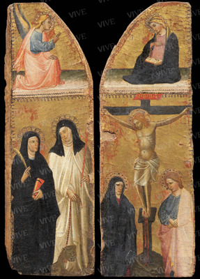 Благовещение, две святые монахини и Распятие с скорбящими.Около 1415 г.