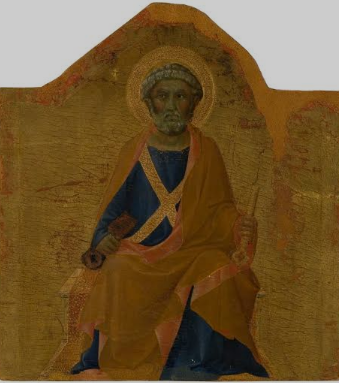 Святой Петр за кафедрой между святыми Павлом и Иоанном Богословом.1332 г.