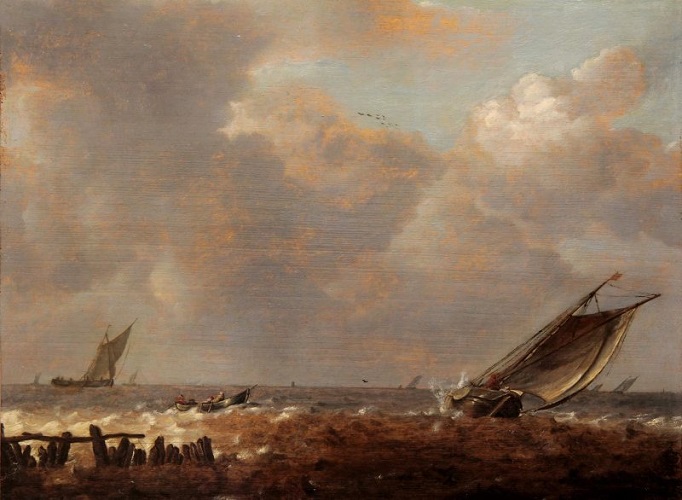 Морской пейзаж c накренившимся парусником.1640-е - 1650-е