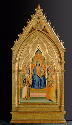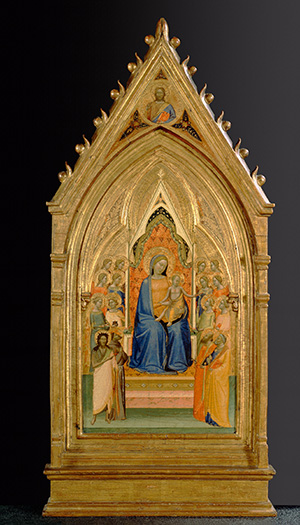 Мадонна с младенцем на троне в окружении восьми святых и восьми ангелов.1338-1340 гг.
