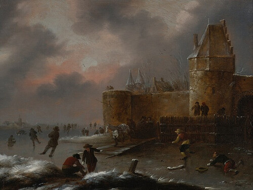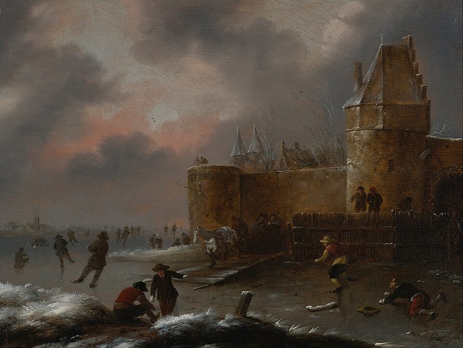 Зимний пейзаж с конькобежцами. Около 1660 г.