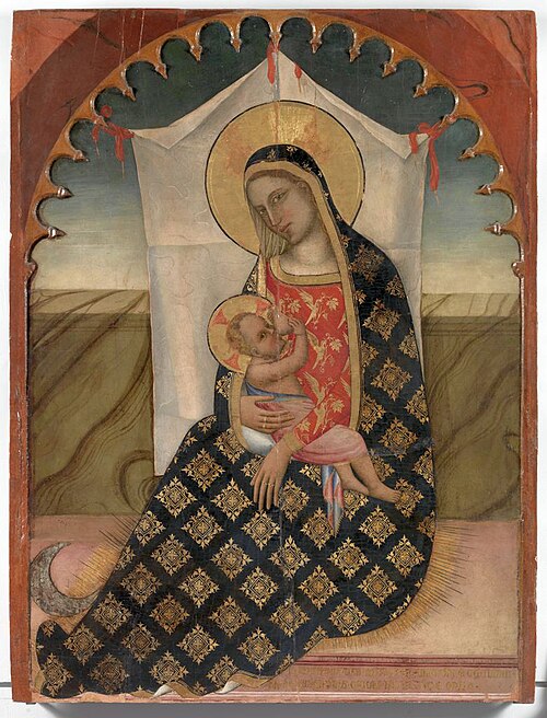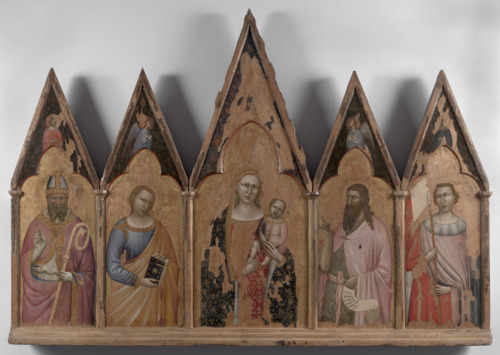Мадонна с младенцем между святым епископом и святыми Иоанном Евангелистом, Иоанном Крестителем и Венантием; на стыке: Христос, которому поклоняются два ангела, между святой Екатериной Александрийской и святым Антонием Аббатом.1370 г.