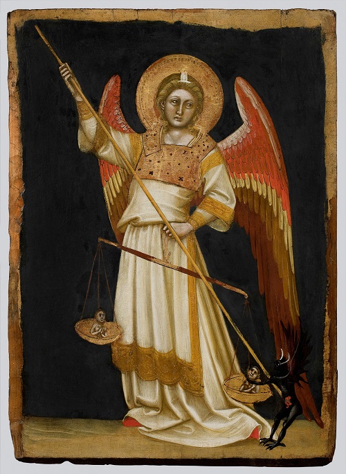 Ангел взвешивает души и сражается с дьяволом.Середина XIV в.
