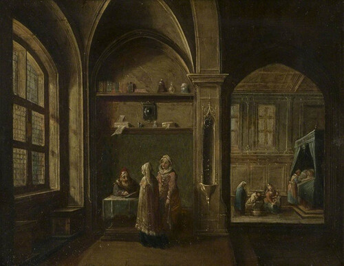 Интерьер эпохи Возрождения с фигурами: Рождение Святого Иоанна.