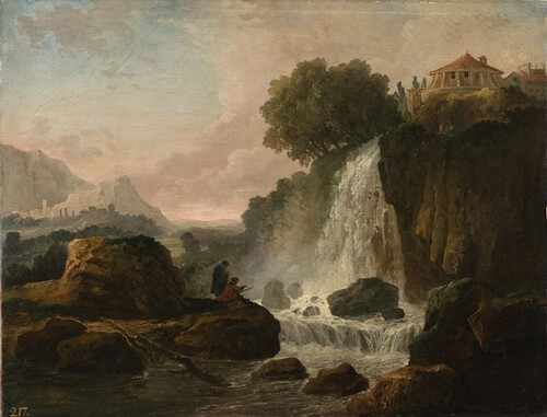 Пейзаж с водопадом при заходе солнца.1770-е