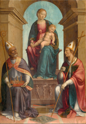 Мадонна с младенцем, святыми Кассианом и Петром Хрисологом. 1515–1516 гг.
