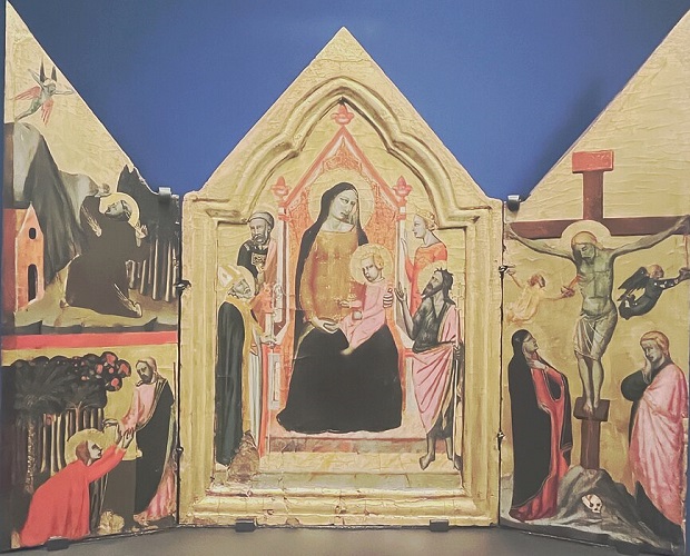 Богоматерь в величественном облике в окружении святых; Святой Франциск Ассизский, получающий стигматы; Иисус Христос и Магдалина. 1330 г.