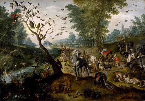 Семья Ноя собирает животных перед ковчегом.Около 1660 г.