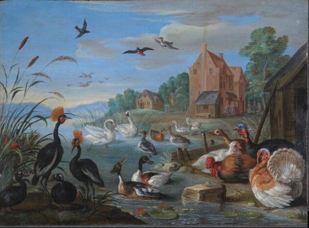 Речной пейзаж с индейками и курами.1641 – 1679 гг.