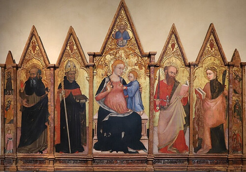 Мадонна с младенцем на троне, святой Августин, святой Павел, святой Антоний Аббат, святая Екатерина Александрийская. 1403 г.