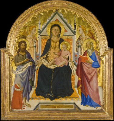 Мадонна с младенцем на троне вместе со святыми Иоанном Крестителем и Павлом (?).Около 1375 г.