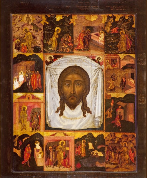 Спас Нерукотворный, с утренними евангельскими стихирами Октоиха.1675 г.