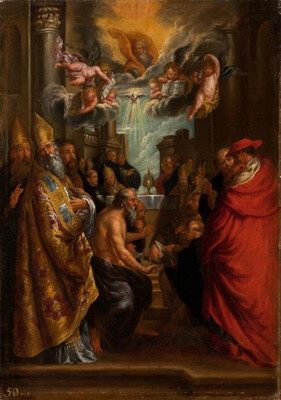 Святые отцы, беседующие о таинстве Евхаристии.XVII в.