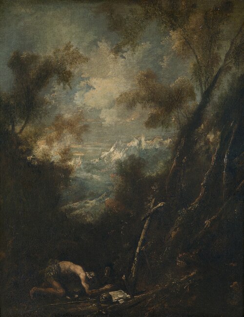 Святой Иероним Вифлеемский на фоне пейзажа.