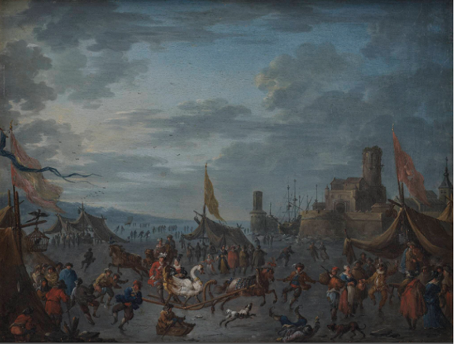 Пейзаж с санками и конькобежцами на льду.1709 – 1719гг.