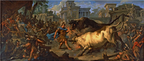 Джейсон укрощает быков Ээта.Около 1742 г.