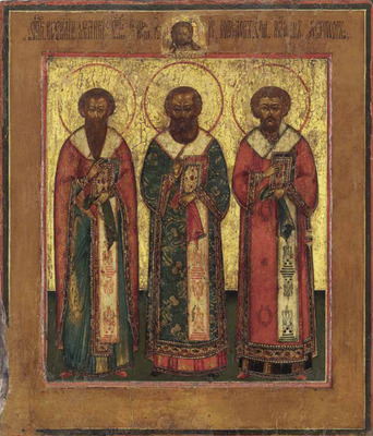 Святители Василий Великий, Григорий Богослов, Иоанн Златоуст.Конец XVIII в.