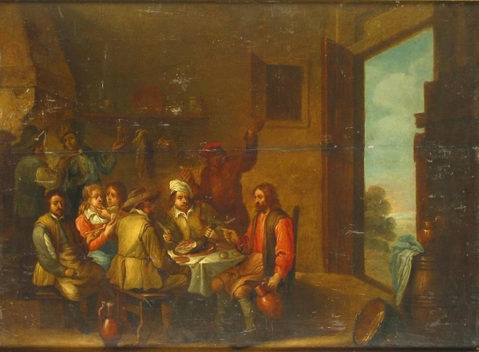 В инвентарной описи Эрмитажа и Кат. 1981 значилась как произведение Винсента Мало. Настоящее имя художника Винсент Адриансен (см.: Maere, Wabbes 1994. Text. P. 30). В более ранней литературе он был известен как Винсент Мало (Wilenski 1960. Vol. 1. P. 599). Судя по размерам и эскизной манере письма, эрмитажное произведение, возможно, являлось подготовительной работой для композиции большого формата на тот же сюжет. Отдельные фигуры из данной сцены (в частности, воин в шлеме) имеют некоторое сходство с аналогичными персонажами, изображенными на картине «Несение креста» Винсента Адриансена (частное собр.; воспр.: Maere, Wabbes 1994. PI. А-К. P. 20).